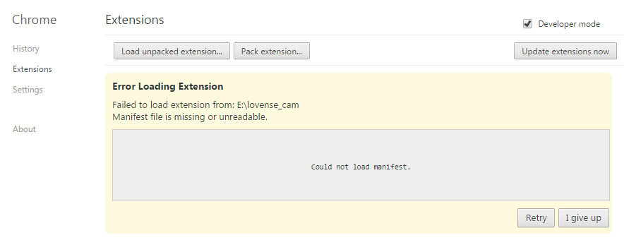 Failed to load extension from:. Open RevoUninstaller and choose “Google Chrome” and click Uninstall. Failed to load extension, manifest is missing (Google Chrome Example) Failed to load extension from, Manifest file is missing or unreadable.