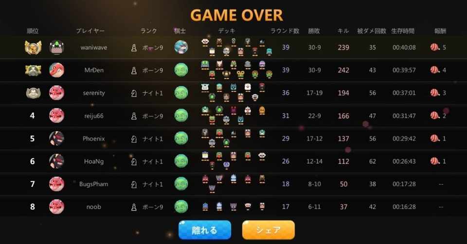 スマホ版Dota Auto Chess攻略 アサシンは致命を★3にすることが最優先ということを証明しました。 本日こんな試合がありました。 この試合はアサシンが4人もいました。アサシン全員終.