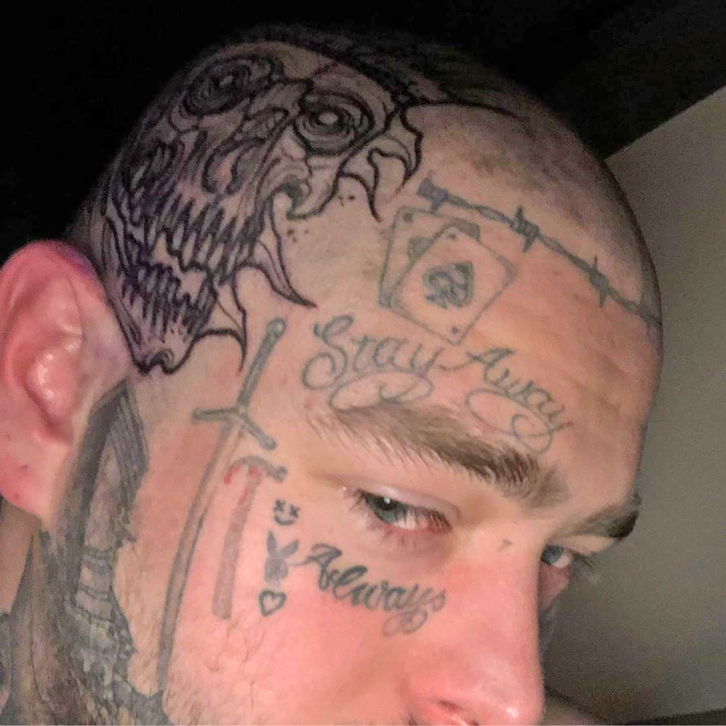 No stranger to facial tattoos, the singer-songwriter has added another:. Get up to 50% off. On Sunday (June 21), Posty shared a picture of his newly-shaven head, which appears to be completely bald and with a large skull illustration in place of his signature curls.