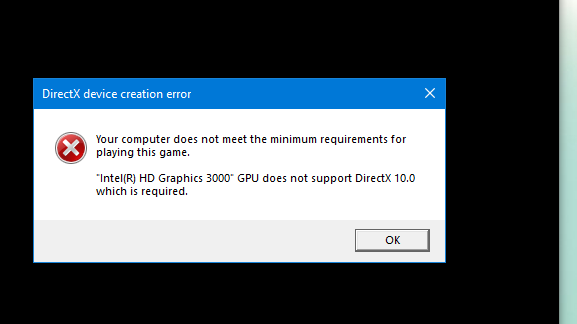 X Directx Device Creation Error Your Computer Does Not Meet The Minimum Requirements For Playing This Game Nvidia Geforce Gtx 1070 Gpu Does Not Support Directx 110 Which Is Required Ok