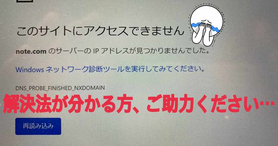 のサーバーのipアドレスが見つかりませんでした。 window ネットワーク診断ツールを実行してみてください。 dns_probe_finished_nxdomain.