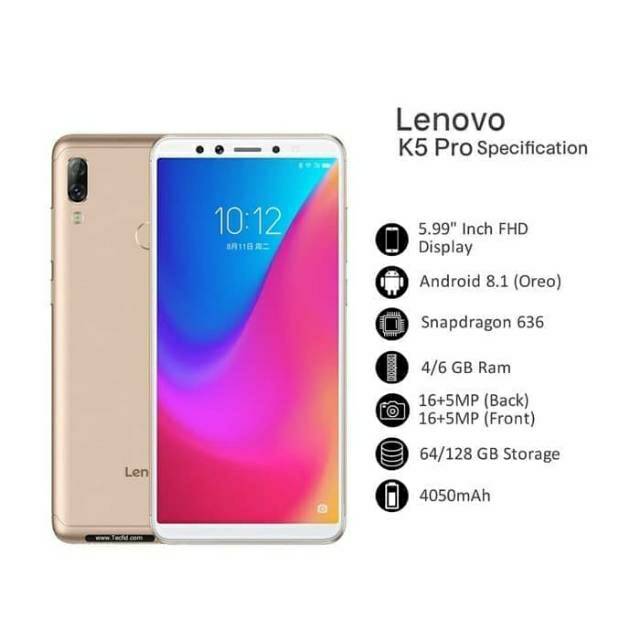 Lenovo k5 pro. It runs on a Qualcomm Snapdragon 636 chipset with 4GB of RAM and Android 8.1 Oreo operating system. The screen has a resolution of 1080 x 2160 pixels and 403 ppi pixel density. Find & buy the right laptop, tablet, desktop or best server.