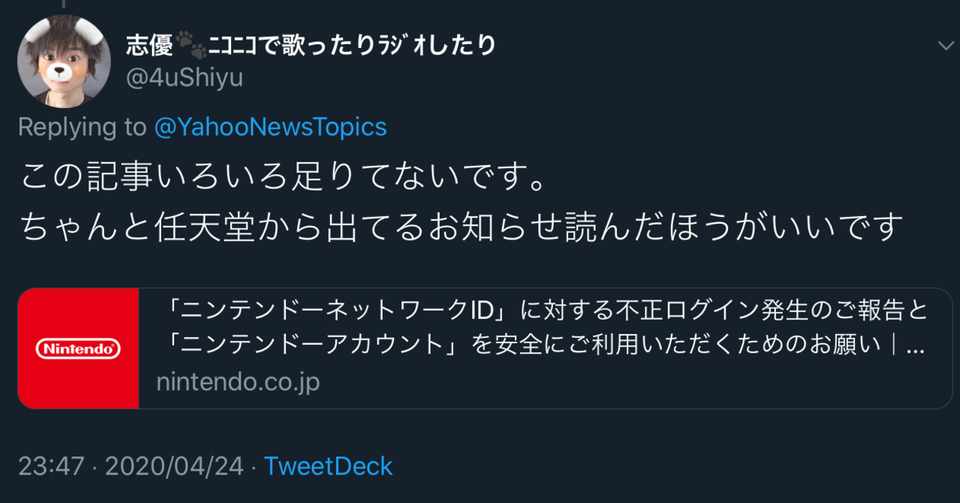 注意 Nintendoから個人情報が流出との事なので不正ログインの対策をしておこう のんびりまったり