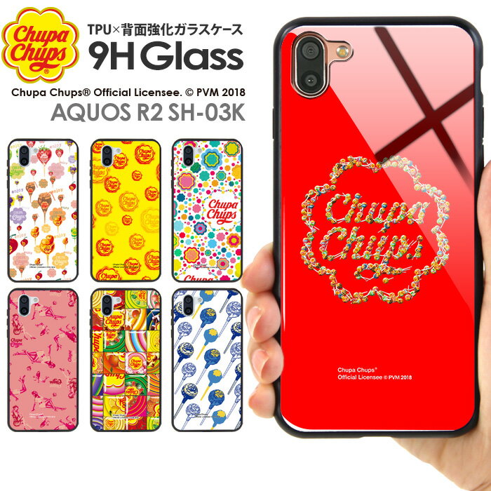 Aquos R2 ケース Sh 03k Shv42 706sh カバー チュッパチャプス 背面ガラス スマホケース 携帯 アクオス Sh03k かわいい きれい おしゃれ Chupa Chups ブランド デザイン コラボ スマホケース カバー ハイブリット デザインプリント Smasmasweets