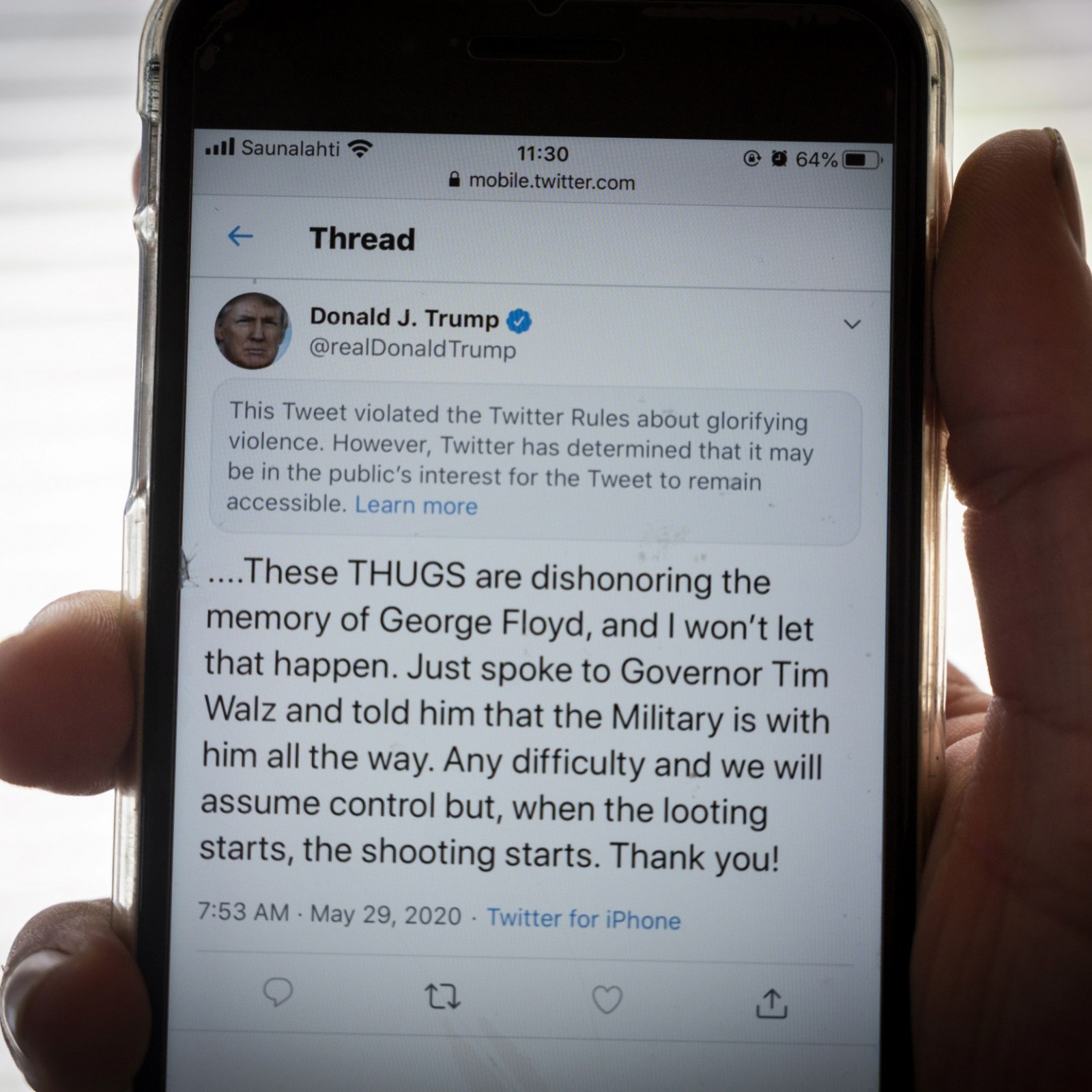 Twitter Flags Trump Tweet On Minneapolis For Glorifying Violence