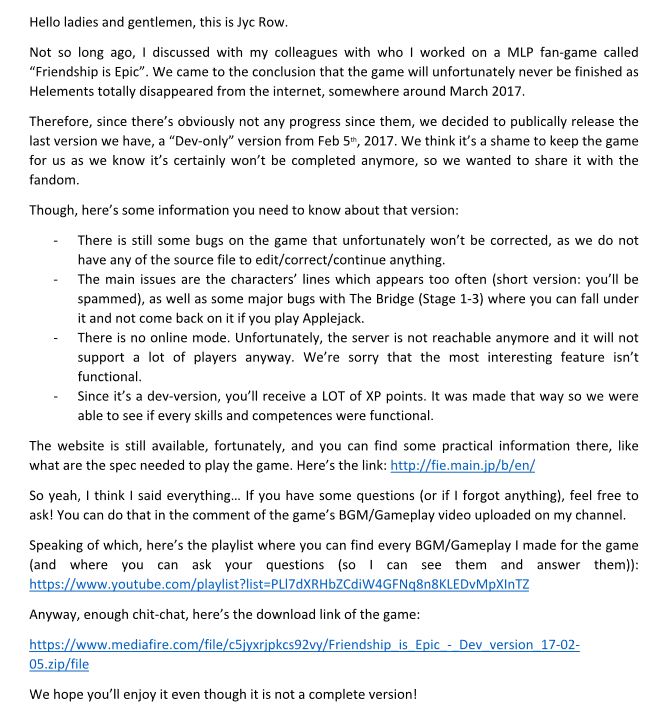 Les autres marques ou noms de produit appartiennent à leurs propriétaires respectifs. Friendship is Epic (Dev version) - Nightmare difficulty (Loyalty). Friendship is Epic is a fan-made MLP game developed by the Japanese brony community.