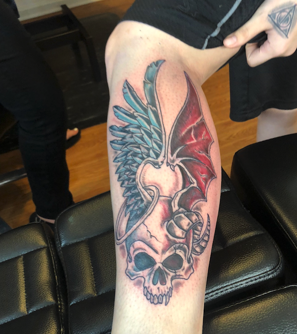 Angels And Demons Good Vs Evil Tattoo By Adam Lorusso At Sugar Skull Tattoo In Billerica Ma Tattoo Com
