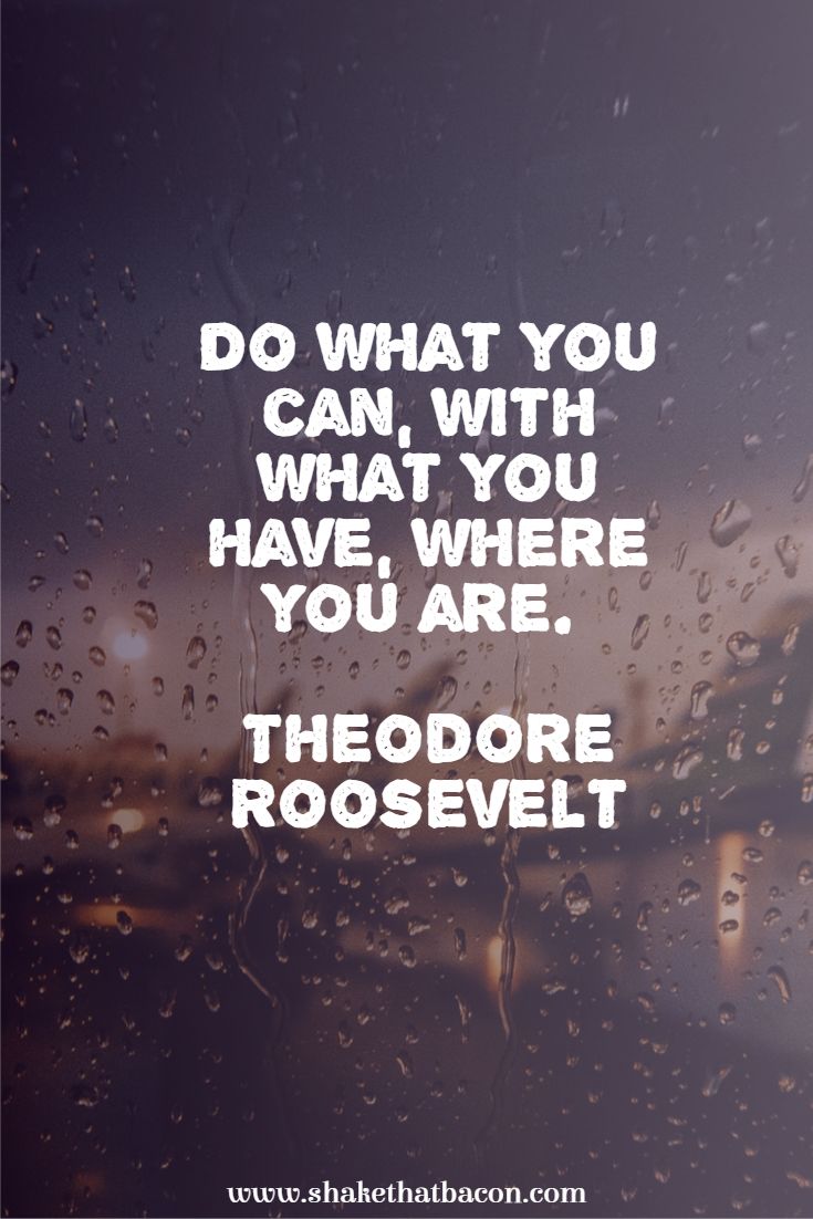 “Do what you can, where you are, with what you have.” ~ Theodore Roosevelt We can overwhelmed and paralyzed by how much is required to make change. She informs you that you have to do something vital tomorrow morning/tonight/right now. “You do what you have to do, so you can do what you want to do.” It became my mantra, and it has gotten me through some tough times.