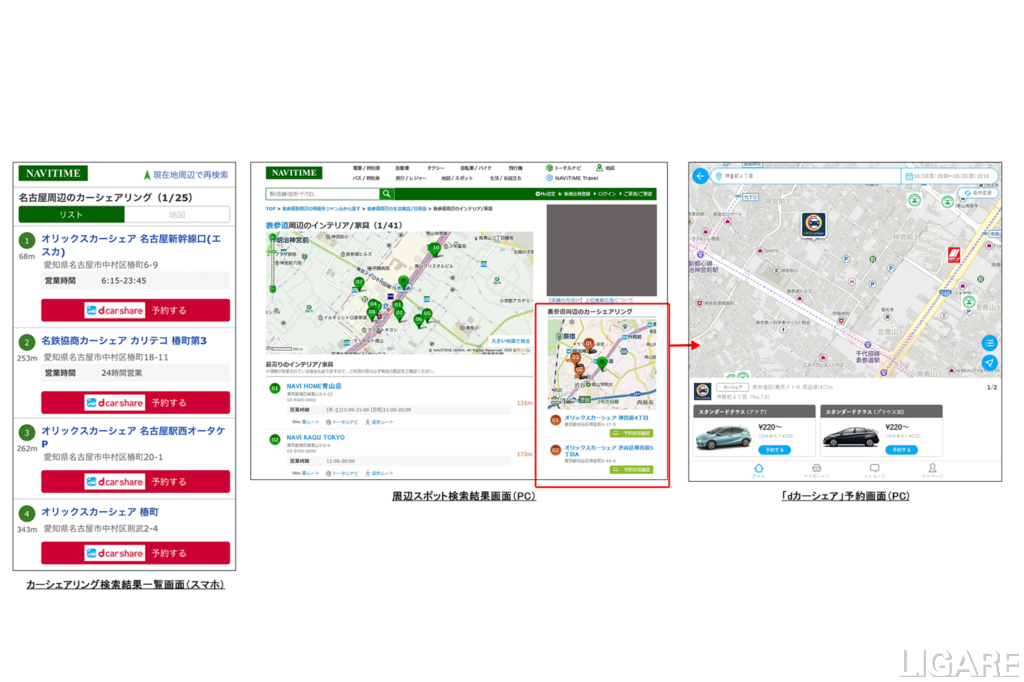 ナビタイム ドコモ Dカーシェア と連携しカーシェアリングの予約に対応 Ligare リガーレ 人 まち モビリティ